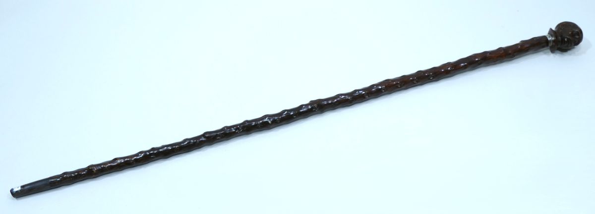 Canne de collection avec pommeau en bois représentant la tête de Georges Clemenceau.