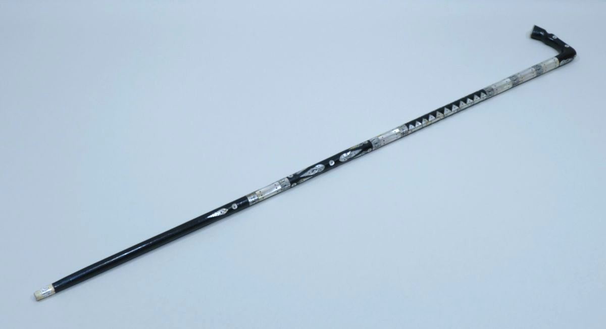 Superbe canne de collection en bois et en marqueterie de nacre.