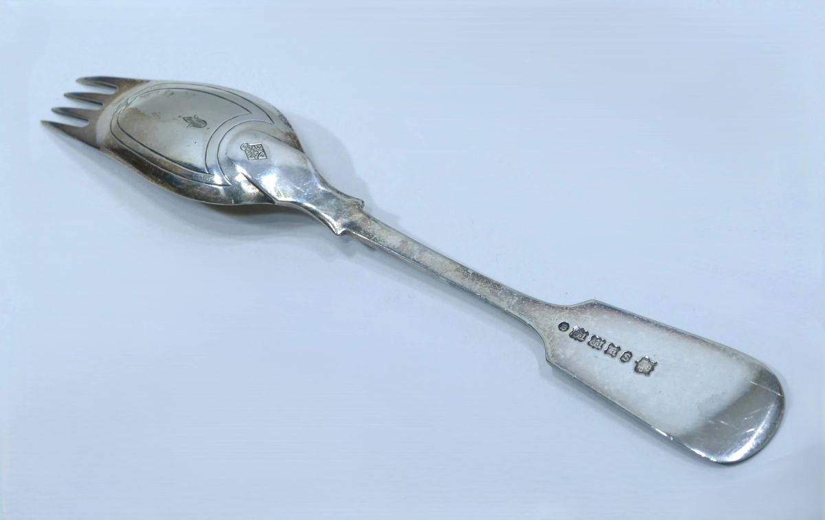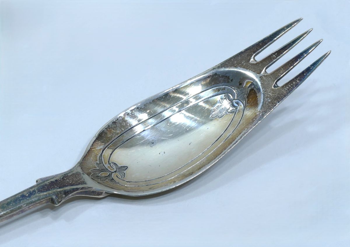 Cette fourchette/cuillère à melon constitue un bel exemple d’orfèvrerie victorienne, élégante et décorative.