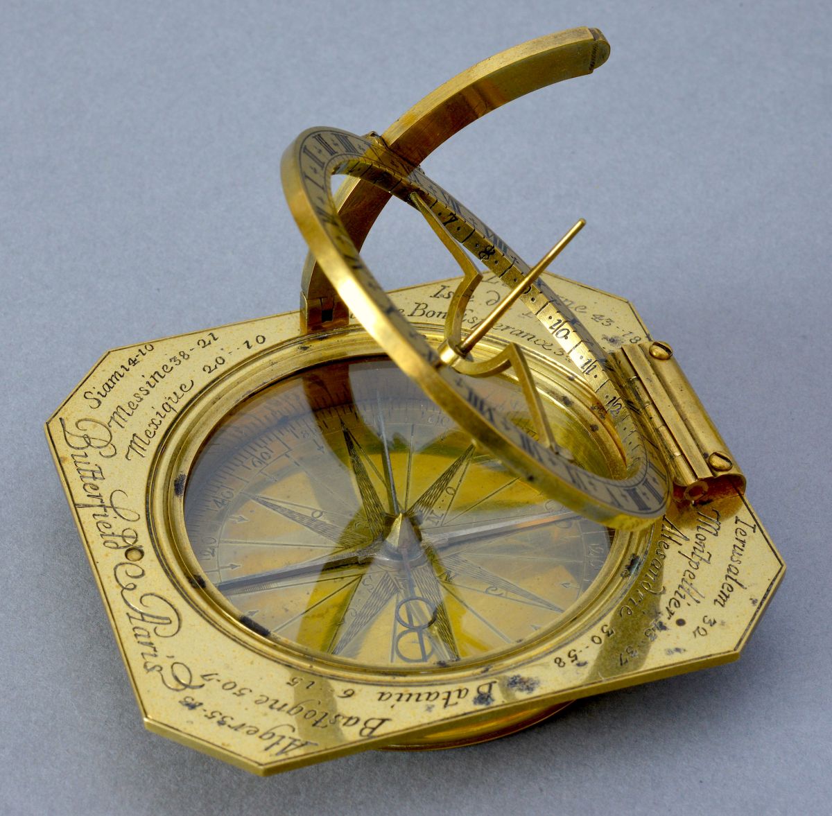 Cadran solaire équatorial universel de forme octogonale en laiton signé « Butterfield A Paris » fait pour un grand voyageur/navigateur.
