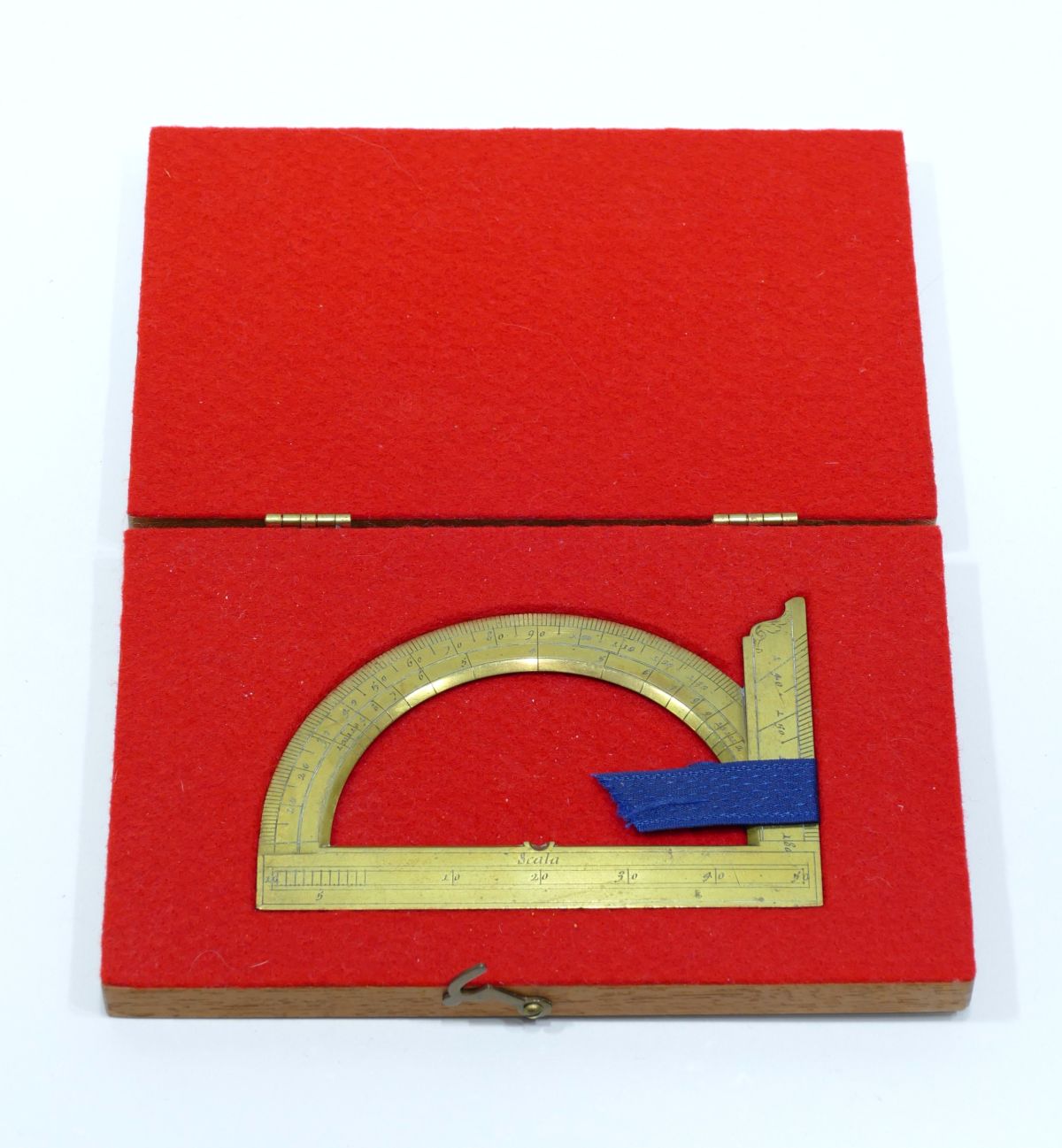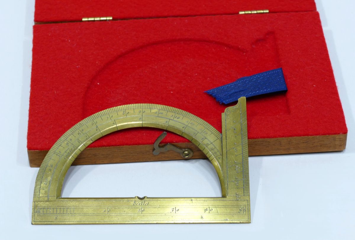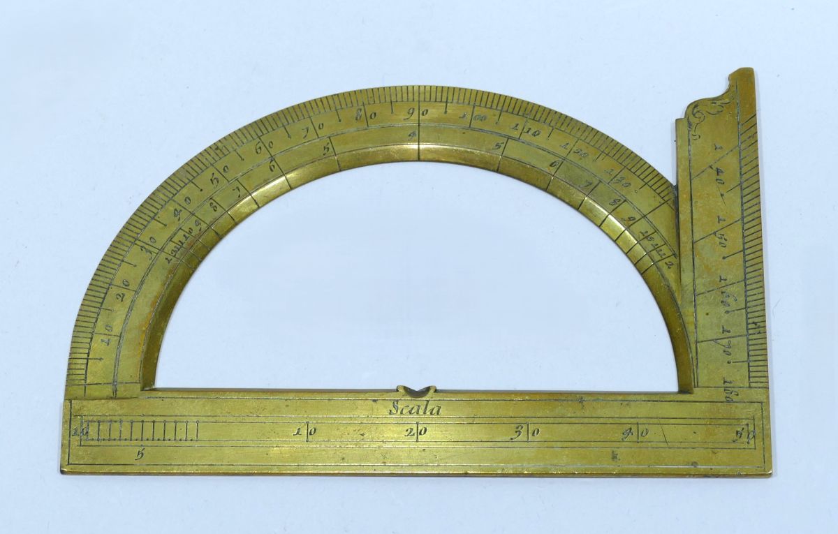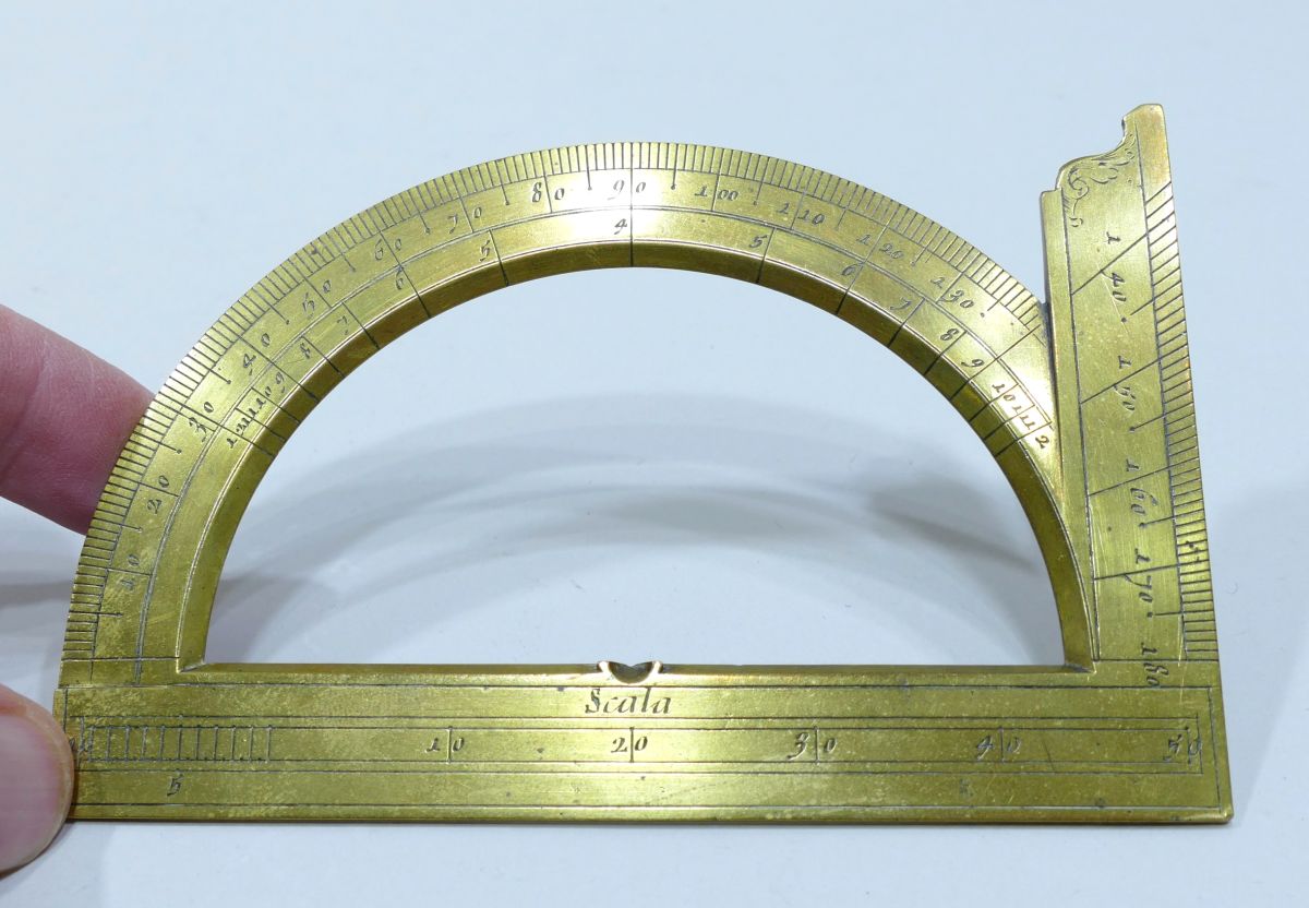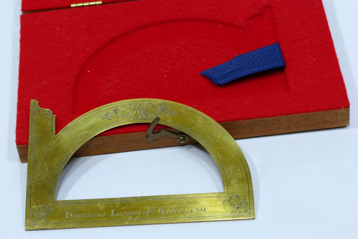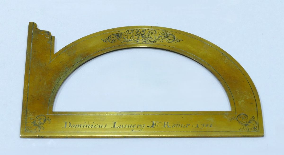 Demi rapporteur en laiton formant un angle droit signé au dos « Dominicus Lusuerg F. Romae 1701 ».