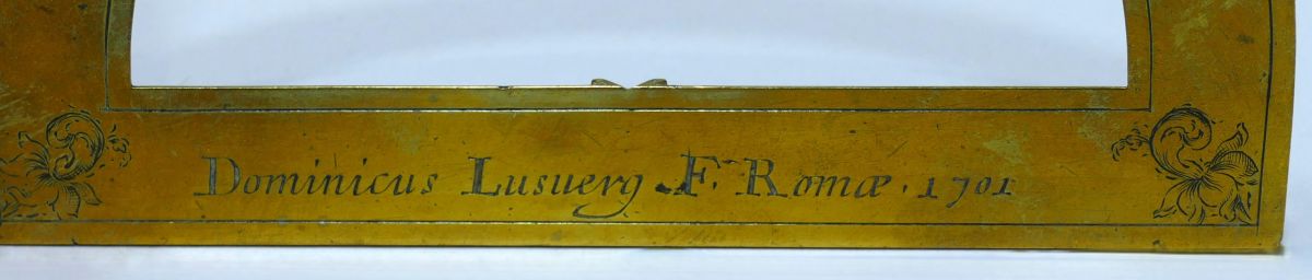 Au dos présence de la signature « Dominicus Lusuerg F. Romae 1701 » avec trois jolis décors de feuilles d'acanthe en volute.